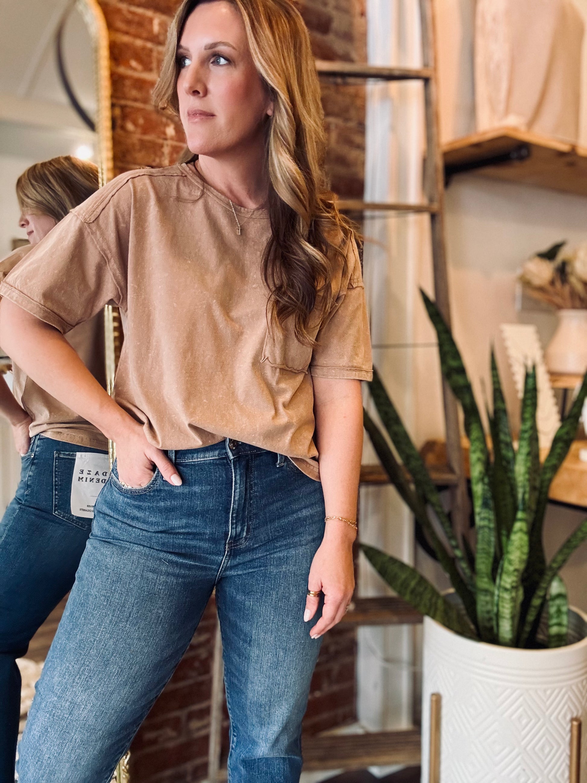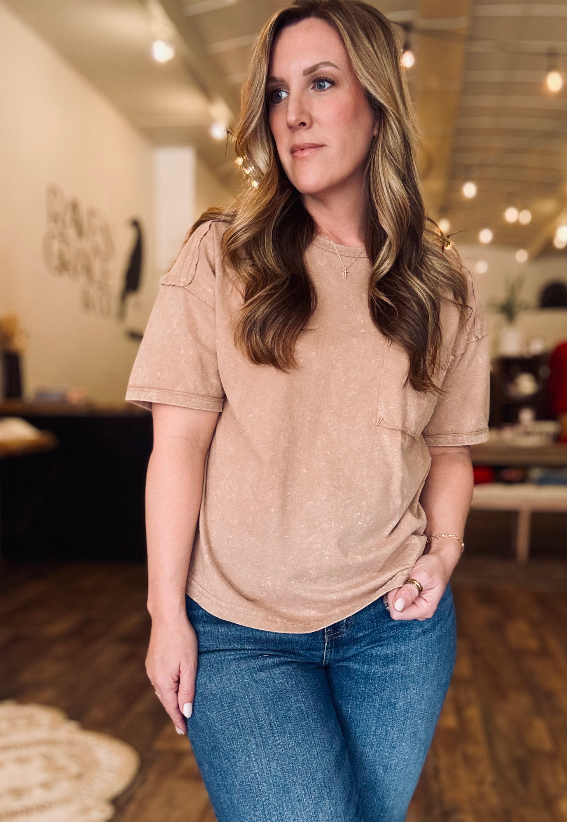 Introducing our Emmie Tee - the ultimate balance of comfort and style. With a longer fit, this tee will flatter every body type and leave you feeling confident. Perfect for everyday wear, this will quickly become your new favorite go-to shirt!