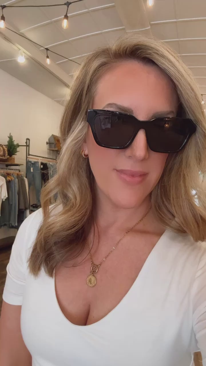 Meet Hayden. With high quality materials and a sleek design, these unisex sunglasses will elevate any outfit. The rectangular shape of the frames adds dimension to your face and complements all face shapes. Made from durable and lightweight materials, these unisex sunglasses are perfect for everyday wear or special occasions.