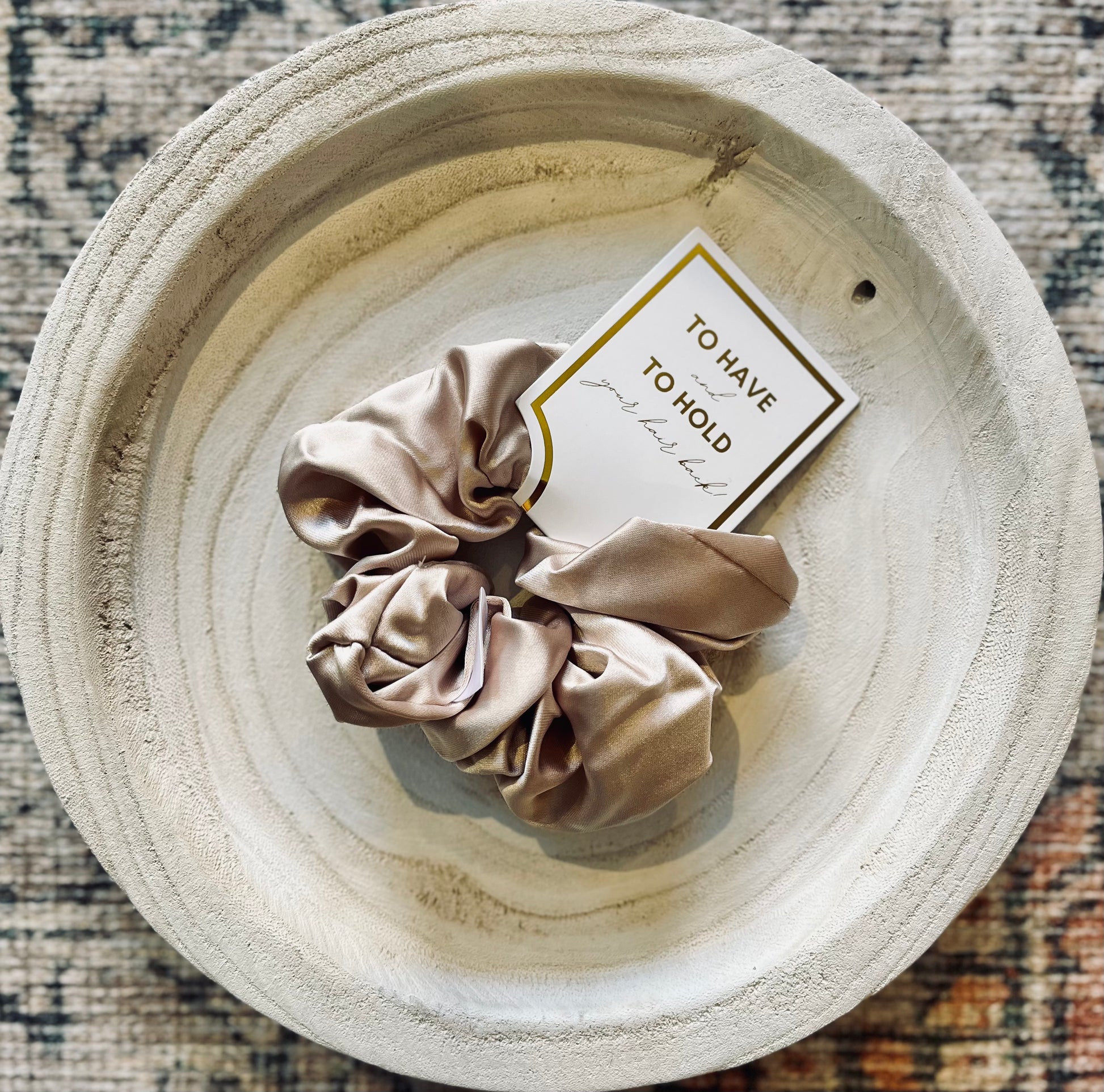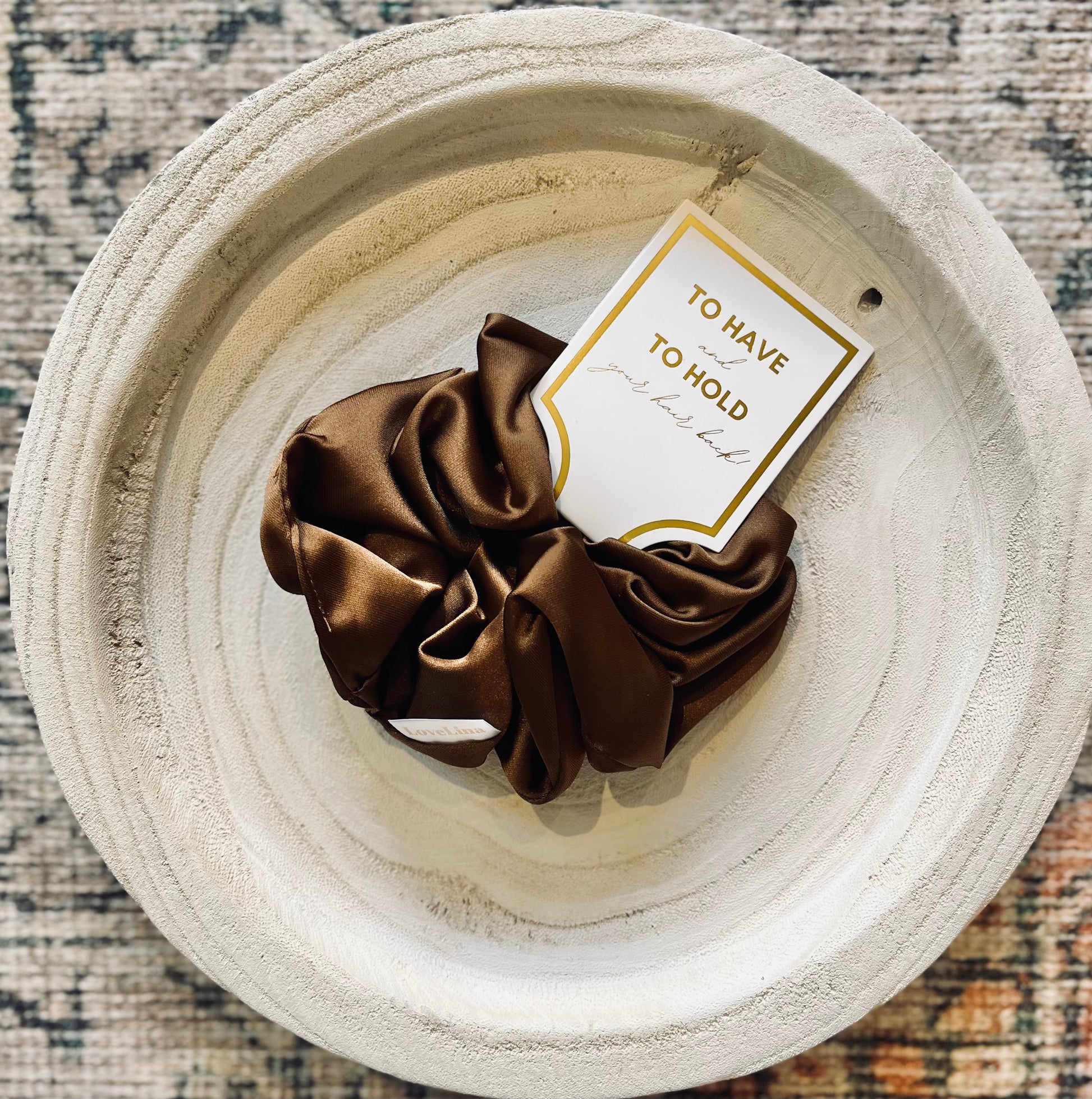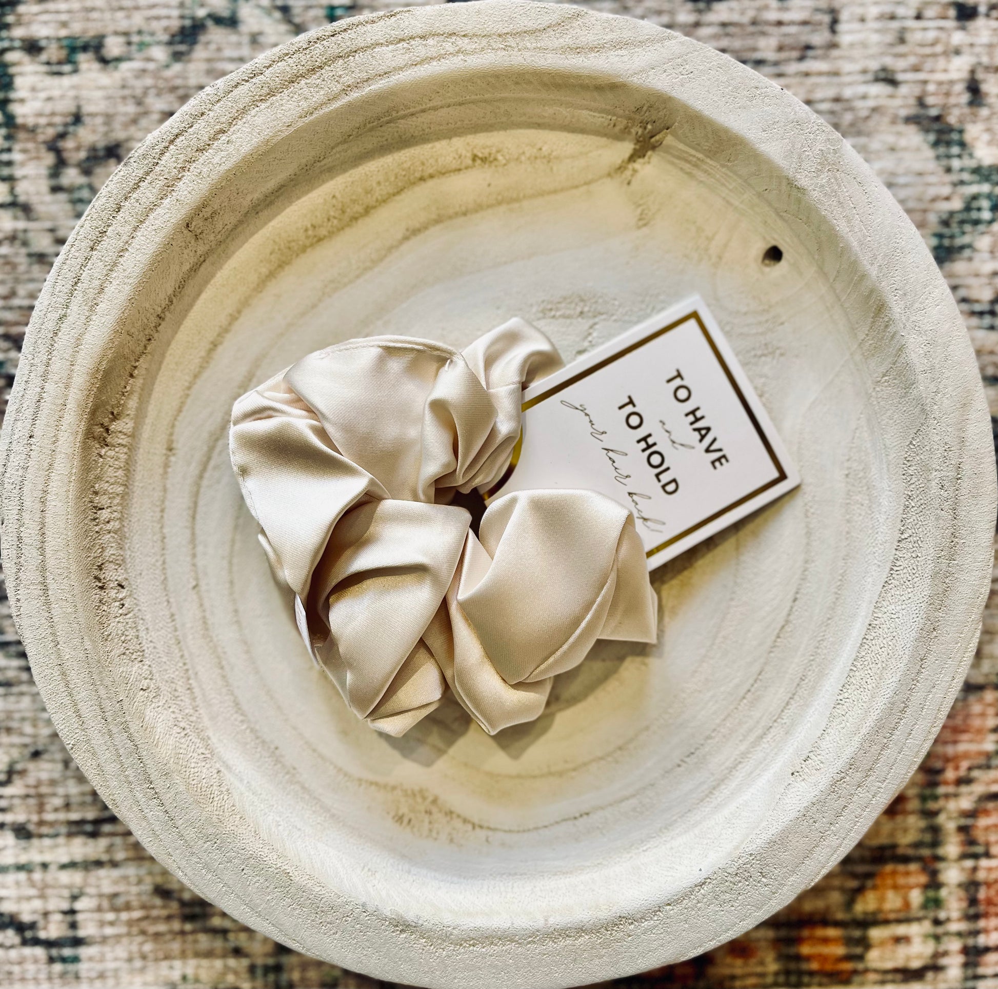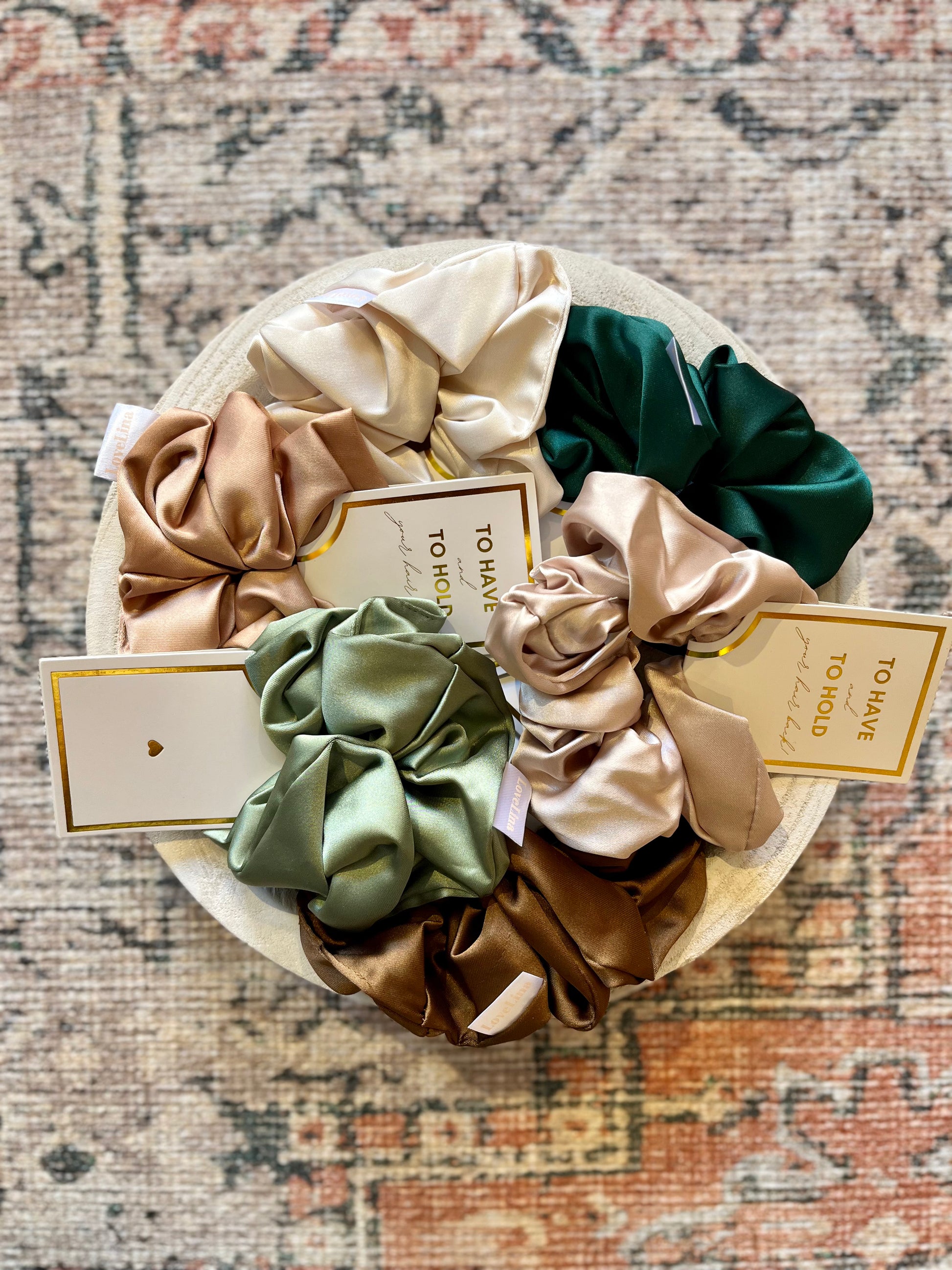 Elevate your everyday look with this elegant satin scrunchy. Crafted from premium satin fabric, this sophisticated scrunchie fits comfortably in your hair and adds a touch of class to any outfit. Ideal for an effortless twist on a classic hairstyle.